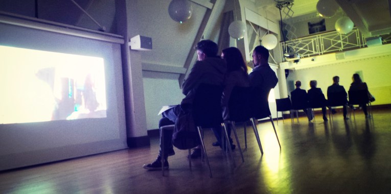 In October 2014, a related live exhibition under the name Autopoiesis 2.0 was held as part of the Arts and Humanities Festival at King’s College London. While the online exhibition space of Autopoiesis aimed to capture and create a multivocal environment for cultural expression, the physical space of the exhibition sought to provide the viewer with a “window” into this space through the display of artworks that have been submitted to Autopoiesis. Instead of exhibiting the “physical” prints or embodiments of these artworks, Autopoiesis 2.0 carried over the notion and practice of the digital into the physical space of the exhibition by opting for the digital projection of artworks through multiple large screens, invoking a similar experience to the web-browsing environment of Autopoiesis. On a practical level, this enabled the display of a greater number of contributions than what would have been possible through physical prints, given the limited exhibition space. This is another instance of how the digital is able to provide more exposure to a variety of works by overcoming some of the spatial limitations. On a conceptual level, this was also intended as a playful reminder of the “materiality” of the digital and an opportunity to engage with the interplays and tensions between the virtual and the physical (Figure 7).