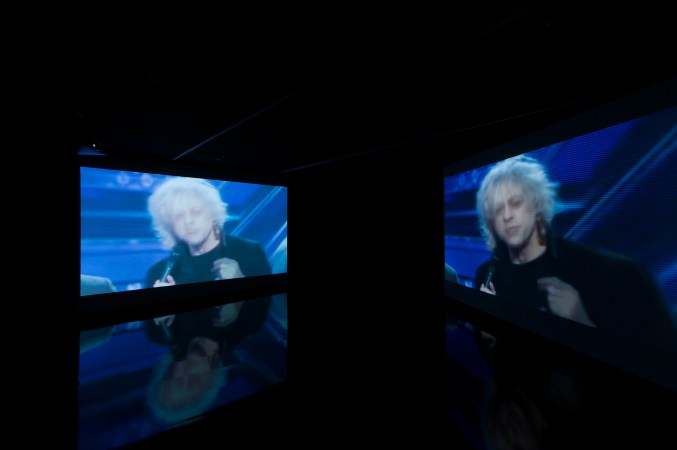 One of the recurrent criticisms that the exhibition has received was that we had seemingly not understood what real propaganda was since there was no mention of Putin’s bot farms or the terror of ISIS. Luis Velasco-Pufleau’s and Sergio Santamaría Borges’s two-channel video installation exemplified the reason for which we chose to omit these and other cases of blatant propaganda. We were trying to take a look, through the lens of the works of art united for this occasion, at a specifically Western capitalist propaganda and the nationalisms and global hegemonies it has helped to bolster throughout the past decades. The video was, at first sight, a surprise to many viewers: why was it bad to raise money for starving or sick kids in Africa? But the form of the work, the ways in which the artists edited the appropriated footage into a catchy, poppy, but ultimately nauseating chain of images was self-explanatory (an important criterion for effective propaganda which the artists consciously exploited). The aesthetics of charity that humanitarian pop is relying on and that Velasco-Pufleau and Borges cast into relief in their work—images of underfed and seemingly helpless people from “Africa” filmed outdoors, juxtaposed with takes of white pop starlets in recording studios—serves to negate colonial history and political contingency in favor of an apolitical, yet deeply ideological narrative of Western generosity and philanthropy.