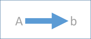 A problem with this model is that A and B are generally assumed to be known political actors before the power relationship is initiated, and the change in behavior is often assumed to be observable.[7] I suggest an alternate view, one that brings the arrow, representing “what is happening in between,” into focus and expands our understanding of power. This focus on the arrow could be drawn as in Figure 2.