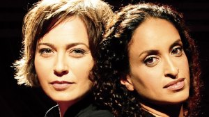 Singers Mira Awad (a Palestinian Israeli) and Achinoam Nini (also known as Noa; a Jewish Israeli of Yemenite background) performed “There Must Be Another Way” in the 2009 Eurovision Contest. Both Awad and Nini are peace activists.[21] The artists (see Figure 4) could be said to resist phenotypical stereotypes: Awad looks more Western, with paler skin and lighter hair than Nini; Nini’s dark skin and hair look more typically Arab than Awad’s.