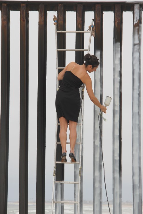 [19] Ana Teresa Fernández, the artist who created Borrando la Frontera (Erasing the Border), was born in 1981 in Tampico, Mexico and now lives in San Francisco, California. She came to the United States at the age of 11 when her father, a cardiologist, was recruited to practice in San Diego. Fernández earned bachelor and master’s degrees in fine arts at the San Francisco Art Institute. Although her personal story is, in many ways, one of privilege, much of her art speaks out for the less privileged. A conceptual artist, her themes include intersectionality as it connects to personal identity, culture, and public discourse and, perhaps most centrally, the idea of “erasure.” Her media are paint, performance, and video, and “[h]er work illuminates the psychological and physical barriers that define gender, race, and class in Western society and the global south” (Fernandez & TEDxPennsylvaniaAvenue, 2017, accompanying text).